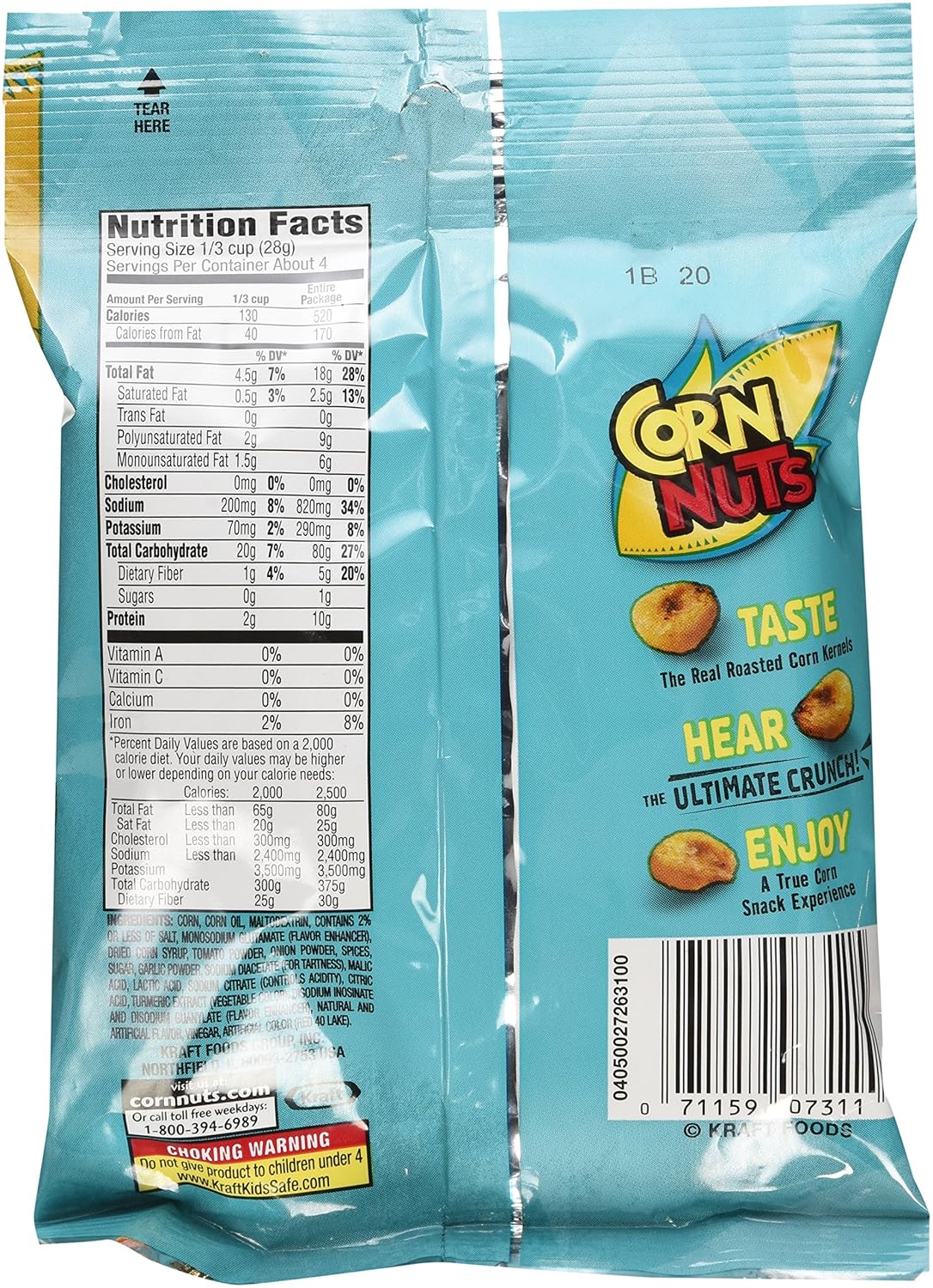 KRAFT Foods make delicious foods you can feel good about. No problem just use the Corn Nuts Ranch Nuts nutrition facts serving size tool to the right. 220 Calories in 17 oz.