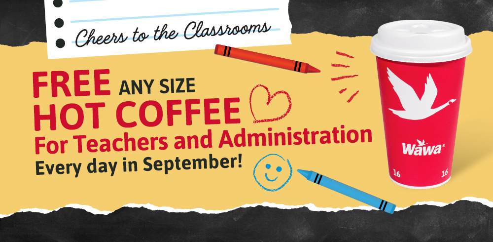 Is thrilled to announce today a month-long Cheers to the Classrooms celebration from September 1 September. Wawa wants to recognize teachers educators administrators and school staff as they head back to school by giving them free coffee every day in September. Offer will be sent to current Rewards Members and new members who register by 8pm every Tuesday in November and December 2021.