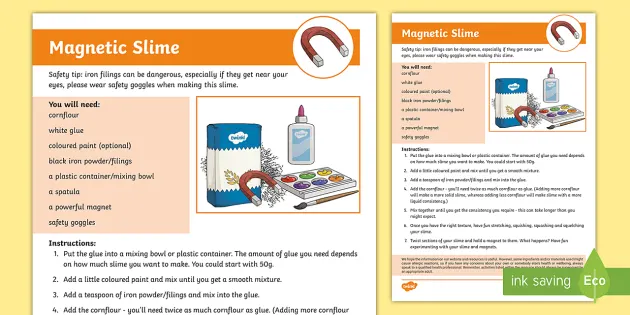 To find out the measurements needed for each ingredient and the instructions needed to create magnetic slime you may want to download these craft instructions. Magnetic Slime Recipe Ingredients. Pour 14 cup of liquid starch into a bowl.